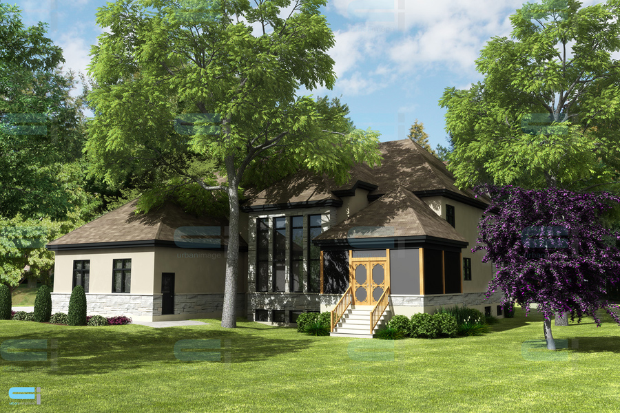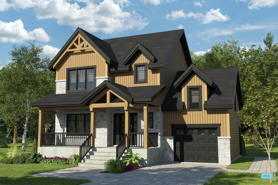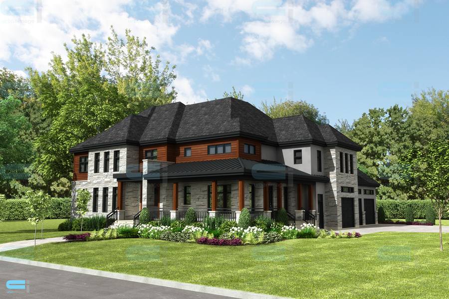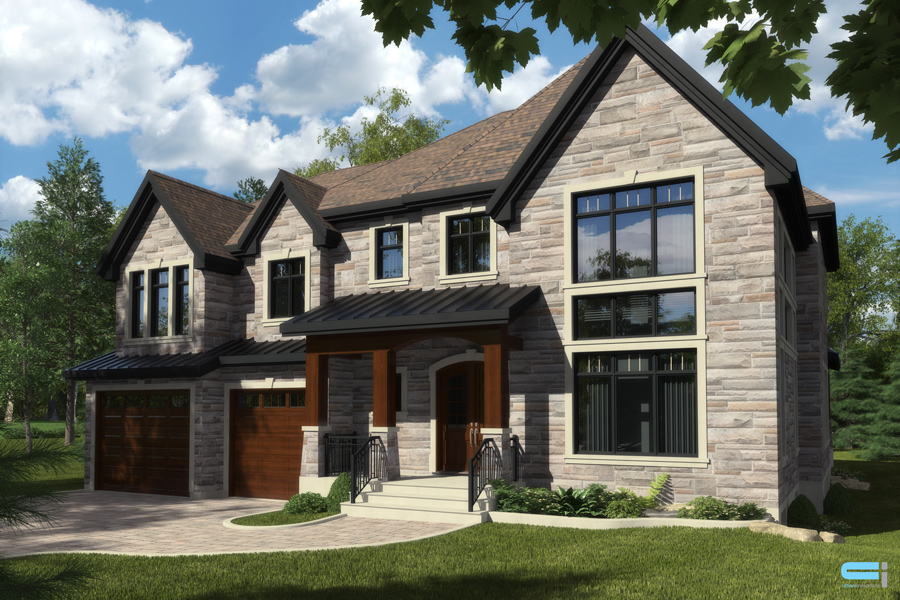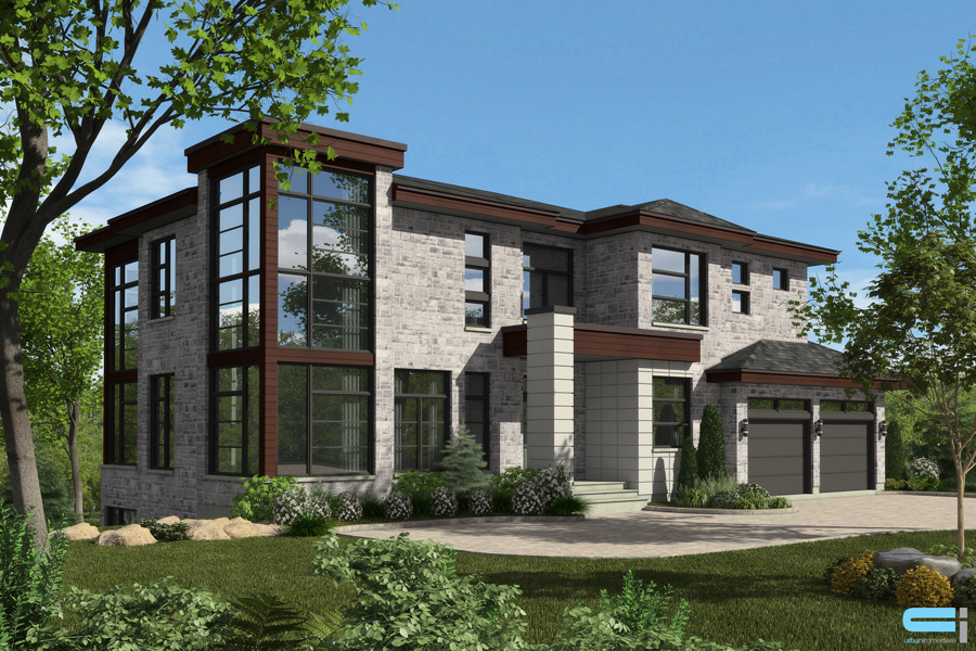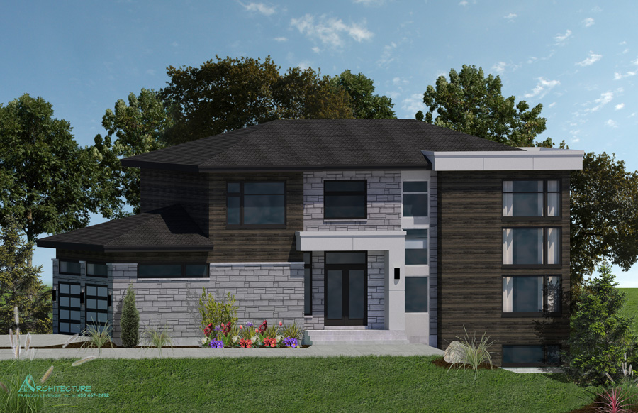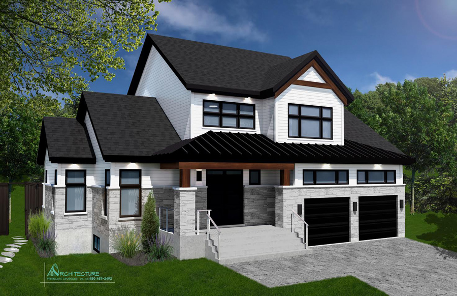 (4) élévations extérieures illustrant l'apparence finale incluant les